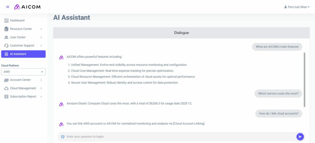 Built with a generative AI foundation, the newly launched AICOM® AI Assistant delivers contextual, accurate, and real-time responses across billing inquiries, access management, resource status, and cloud usage analytics. Designed to eliminate the need for time-consuming searches, the assistant helps both platform administrators and enterprise users quickly obtain information and follow step-by-step operational guidance. New users can onboard more easily, while internal teams significantly reduce the time spent on troubleshooting and managing cloud financial tasks. As a 24/7 virtual AICOM® consultant, the AI assistant ensures uninterrupted operational support and elevates cloud governance from passive tooling to active intelligence—marking a pivotal shift toward more proactive, autonomous, and reliable cloud operations.
